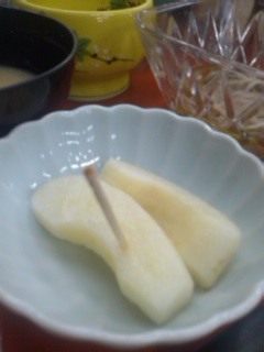 そして梨。スイカもプルーンも食べてさらにデザート・・・もちろん別腹ですが何か?